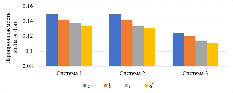 Средние значения паропроницаемости исследованных образцов подсистем представлены в Таблице 1 и в графическом виде отражены на Рис. 3.