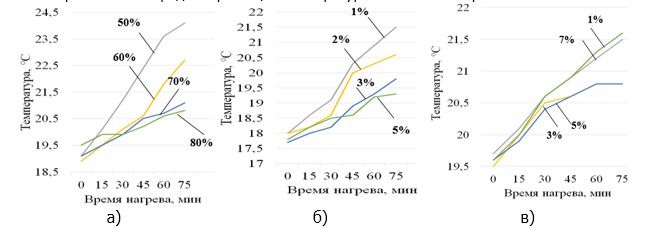 На Рис. 4 показаны зависимости изменения температуры на внешней поверхности макета объекта от количества введенных компонентов, полученные по предварительным экспериментальным данным.
