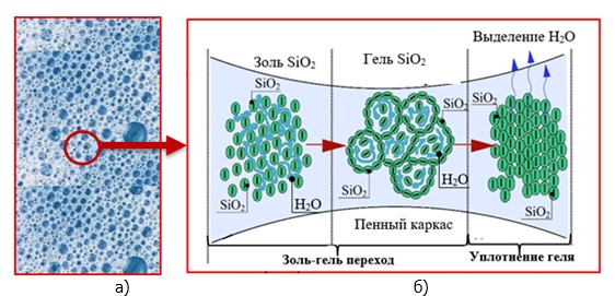 Рис. 5. Образование прочного пенного каркаса при золь-гель переходе: