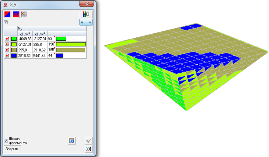 Параметры фибрового армирования определены на основе анализа полей напряжений, полученных в результате статического расчета осуществленного средствами ПВК SCAD (Рис. 6) [19].