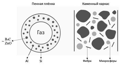 - Сочетание каменного каркаса и функционализированной пены. Каменный каркас бетона насыщается тяжёлыми минералами и гидросиликатами кальция, обеспечивающими классическую γ-защиту (Рис. 1).