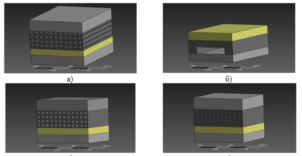 Рис. 1. Модифицированная ЦПМ: а) с квадратными пустотами,