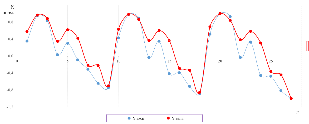 Рис. 5. Диаграмма экспериментальных и расчетных значений