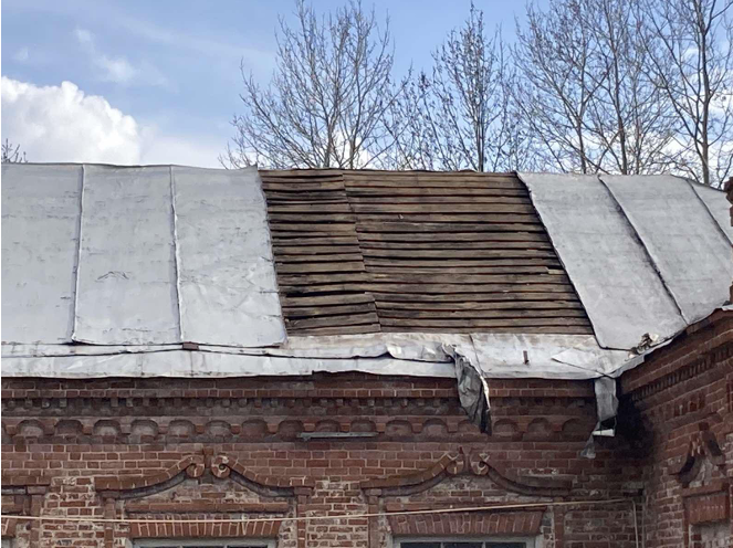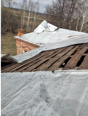 Рис. 3. Разрушение кровли объекта культурного наследия регионального значения «Здание школы» (Пензенская область, Шемышейский район; фото автора)