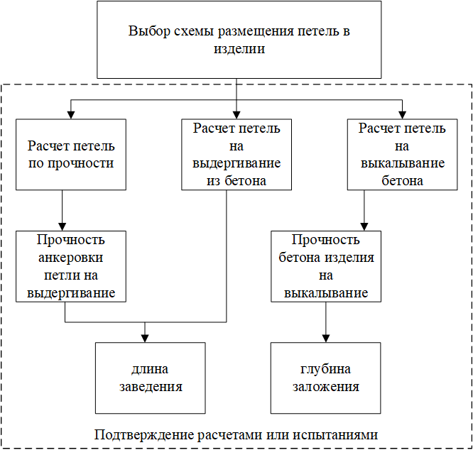 Дополнительно следует отметить необходимость проверки строповочных (монтажных) петель при разработке номенклатуры печатаемых элементов, так как в противном случае в процессе подъема, поворота и перемещения груза сборная конструкция может прийти в ограниченное работоспособное или неработоспособное состояние [16]. Наряду с проводимыми расчетами в различных ПК-комплексах основные для проведения расчеты можно свести к алгоритму проектирования самих петель, показанном на рисунке 9 [17]. Исходные данные для проведения расчетов должны включать способы строповки и схемы строповок. Причем проектирование строповочных петель должно являться частью разработки номенклатуры печатаемых сборных элементов и согласовываться с технологическими схемами монтажа.