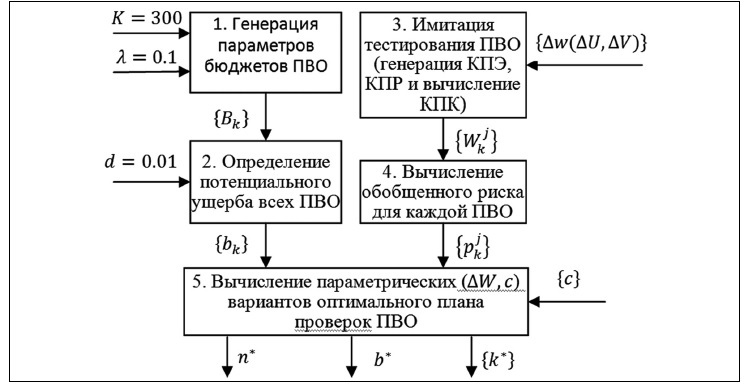 Рис. 1. Схема моделирования варианта планирования проверок ПВО