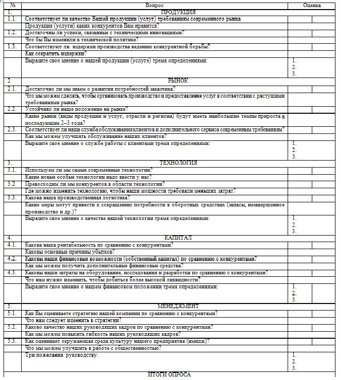 Вариант анкеты для проведения экспресс-диагностики реального состояния компании