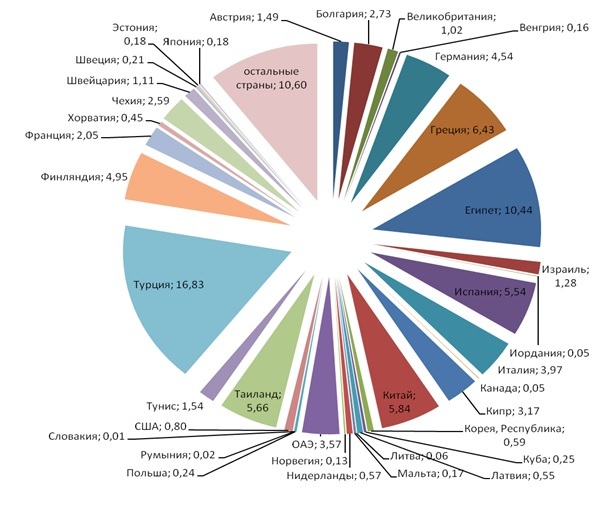 Рис. 1. Распределение туристического потока из России по странам