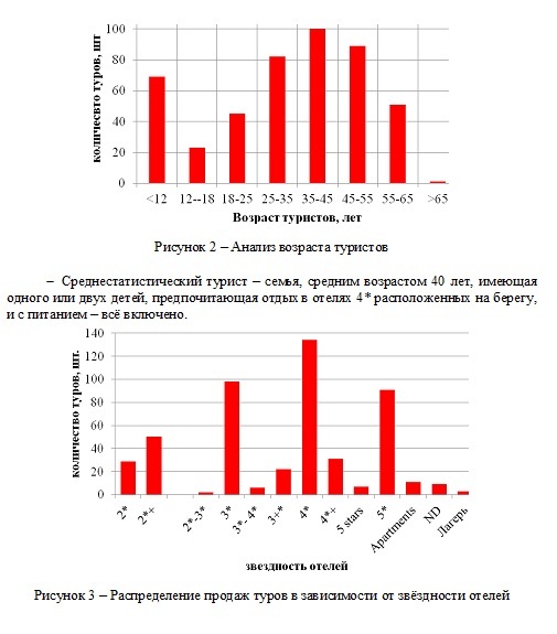 Исходя из анализа представленных выше данных, можно составить портрет среднестатистического туриста и предлагать продукцию, удовлетворяющую потребности большинства.