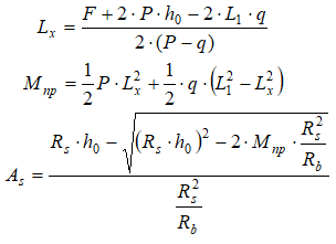 Для ленточного железобетонного фундамента, армированного только в нижней части сечения (Рис.1.), формула (8.4) с учетом (8.5) будет выглядеть так (1):