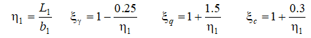 где прочностные характеристики грунта определяются в соответствии с условием прочности Кулона-Мора по следующим формулам: