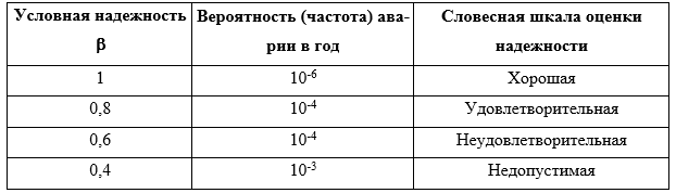 Шкала надежности и вероятности аварии объектов при экспертных оценках