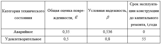 В ходе исследования определялась условная надежность здания b для двух вариантов (таблица 1):