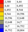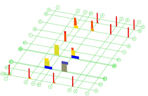 На рисунке 5 представлено распределение армирования для колонн. Максимальное различие армирования составляет 38%.