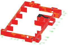 При сравнении результатов армирования диафрагм жесткости и стен подвального этажа, проведенных на базе обобщенных расчетных сочетаний усилий, выявлено, что при образовании карста увеличились зоны максимального армирования и площадь требуемого армирования на 65 %.