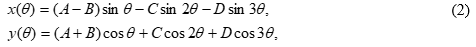 , и, отделяя действительные и мнимые части, получим уравнения контуров отверстий в параметрическом виде: