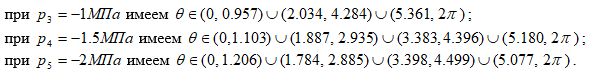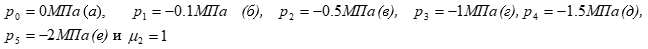 , а также при первых трех значениях давления во всех точках контура действуют сжимающие напряжения.