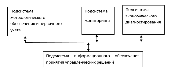 Системный подход к реализации рассмотренного выше управленческого процесса, его институционализацию и инкорпорирование в сложную ткань производственного менеджмента хозяйствующего субъекта предполагает, как отмечалось выше, структурирование на основе БНЗ многофункциональной информационно-инструментальной системы, в состав которой входят подсистемы (рис.1):