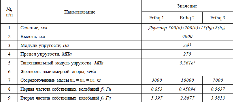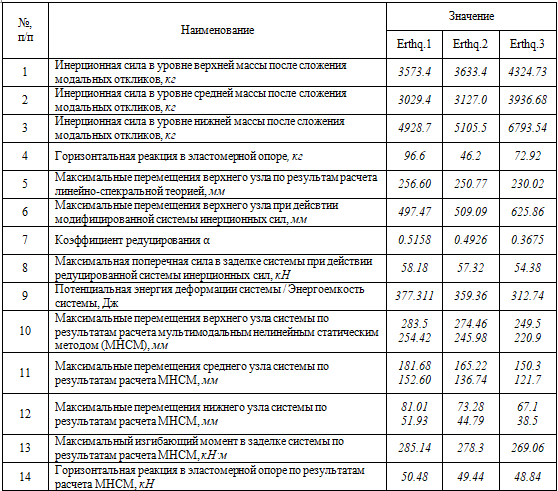 Полученные результаты для сейсмических воздействий Erthq1..3 сведены в таблицу 2.