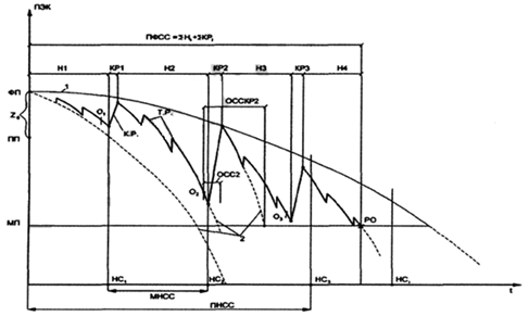 Рис. 1 Общая схема изменения показателя эксплуатационных качеств за весь период цикла эксплуатации [8]