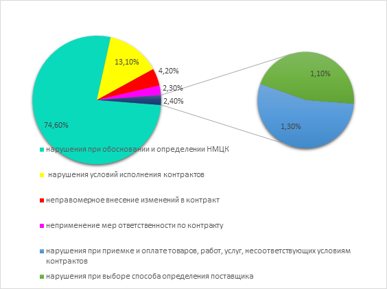Таким образом, наибольшее количество нарушений связано с определением начальной (максимальной) цены контракта.