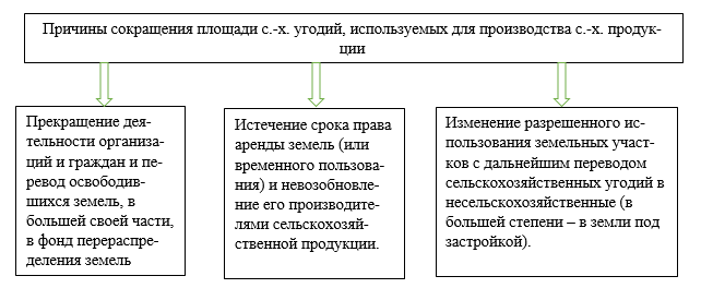Рисунок 2. Причины сокращения площади сельскохозяйственных угодий, используемых для производства сельскохозяйственной продукции