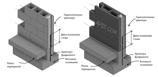 Рис. 2 – Сравнение разреза по стене у здания, построенного стандартным способом и способом 3D-печати [15]