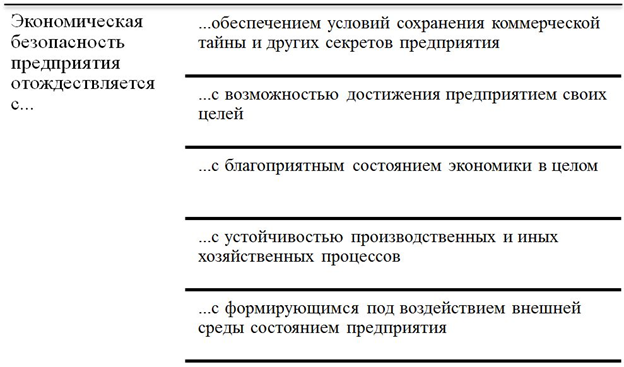 Вместе с тем, оценка теоретических взглядов на понятие «экономическая безопасности предприятия», приводит к выводу об их семантической неоднородности и некоторой противоречивости.