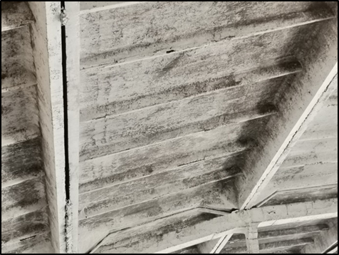 Рис. 1. Следы замачивания железобетонных плит покрытия |