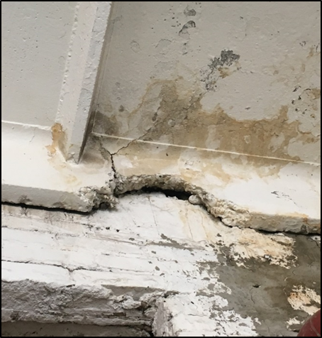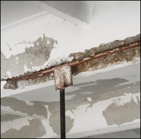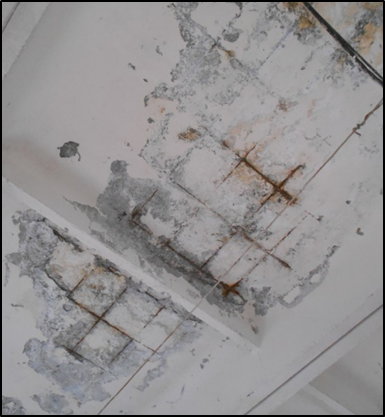 Рис. 2. Обнажение арматурного каркаса плиты покрытия в результате замачивания