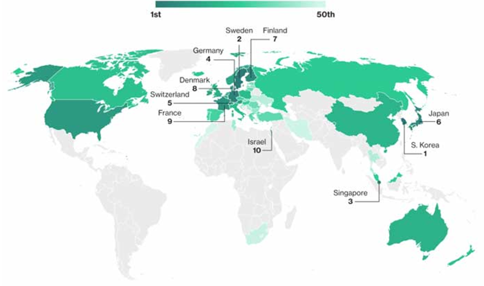 Рис. 1. Топ-10 рейтинга инновационного развития стран по версии Bloomberg в 2018 г. [12]