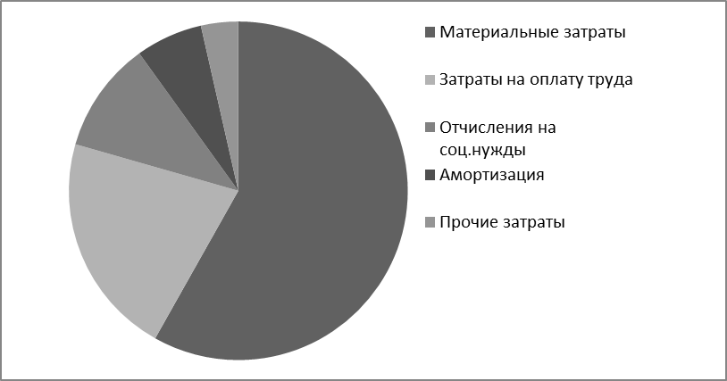 Рис.2 Соотношение элементов затрат на опытно-экспериментальные работы, проводимые на исследуемом предприятии ООО «ХХХХ»