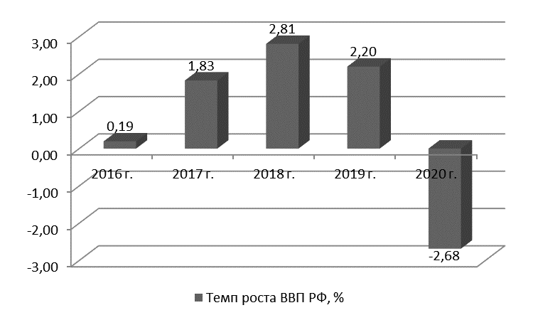 Рисунок 1 – Темп роста валового внутреннего продукта РФ за период 2016-2020 г, %