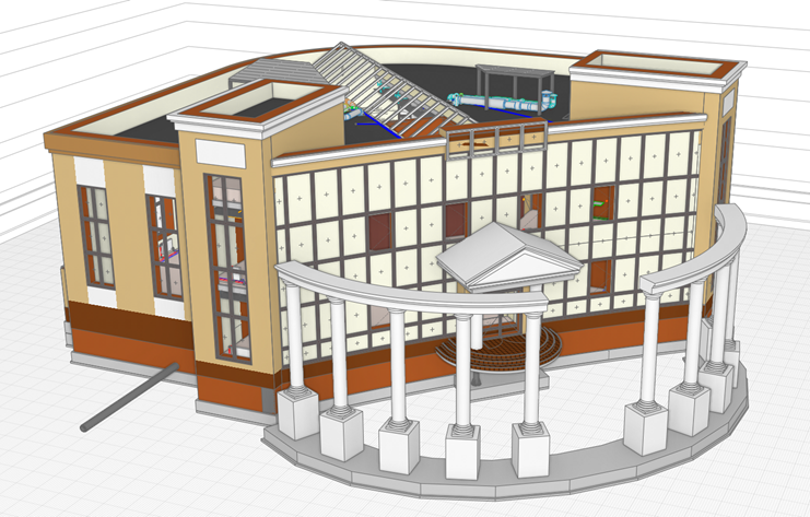 Для апробации результатов разработки скриптов выбрана ЦИМ повторного применения административного назначения — Дворец бракосочетаний. Данный проект включён в Реестр экономически эффективной проектной документации Минстроя России, и представляет из себя проектную документацию, по которой была создана ИМ в Renga в формате «.rnp», которая может быть адаптирована или использована в качестве основы при разработке нового проекта.