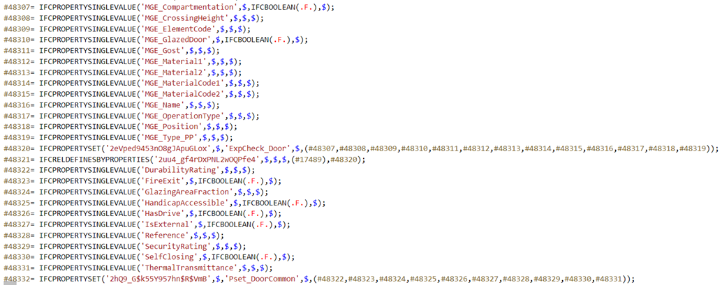 Рис. 15. Атрибуты, параметры и геометрические характеристики, видимые в самом IFC-файле