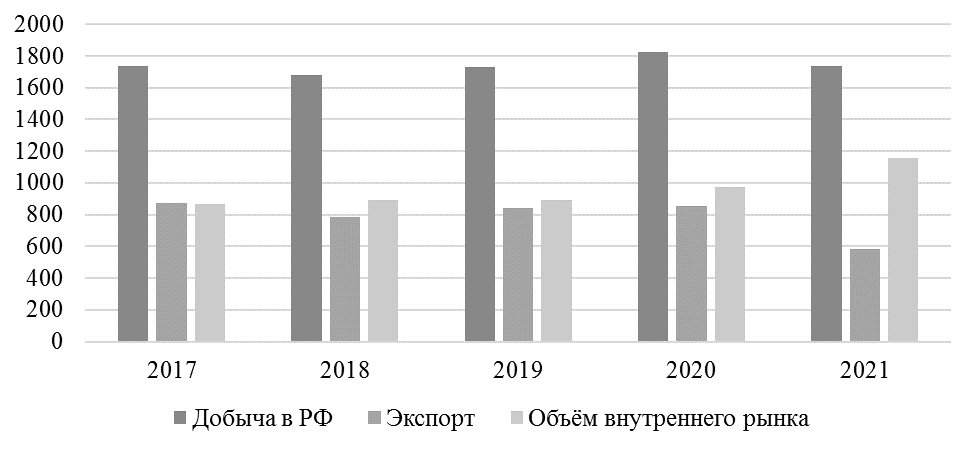 Рисунок 2 – Характеристика российского рынка минтая, тыс. тонн