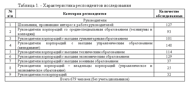 Совокупность описанных и некоторых других проблем и гипотез в понимании сущности человеческого капитала руководителей корпораций и его влияния на социально-структурные отношения, предполагает проведение специального исследования.