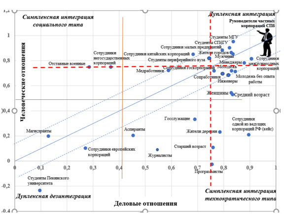 Рис. 3. Обобщенные данные о социально-структурных отношениях руководителя и сотрудников корпораций
