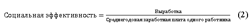 Социальная эффективность определяется как соотношение показателя выработки к среднегодовой заработной плате одного работника.