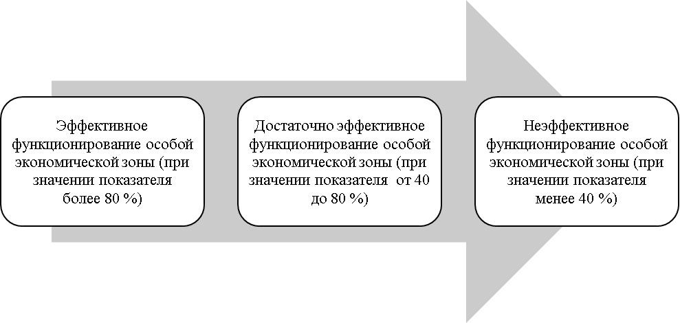 Анализ развития ОЭЗА проводится в совокупности с показателями, определяющими уровень финансового состояния и показателями, устанавливающими уровень развития через показатели, характеризующие эффективность: экономическую, социальную, финансовую. Экономическая эффективность определяется как соотношение результатов производства с уровнем затрат.