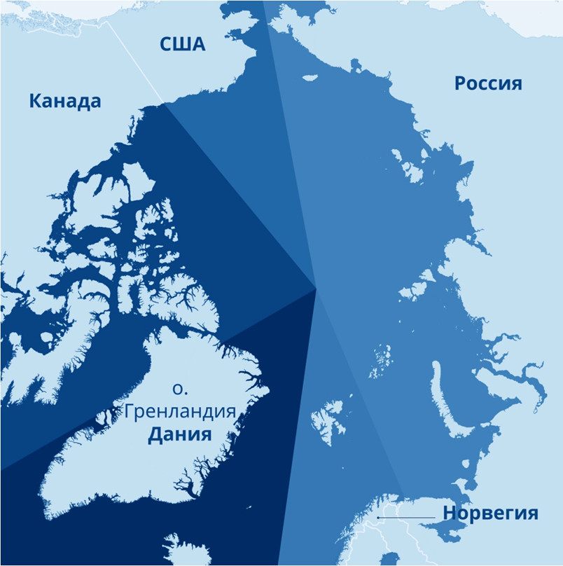 Рис. 1 Пограничное деление территориальных вод в Арктической зоне [3]