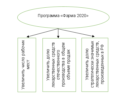Еще одним примером укрепления отечественного производства является программа «Фарма2020» [1], которая была продлена до 2024 года. К этому времени доля отечественных препаратов должна достигнуть 54% в общем объеме потребления. Одновременно планируется производить 93% препаратов, включенных в перечень жизненно-необходимых и важнейших лекарственных препаратов. Согласно программе, необходимо достичь следующих показателей (рис.3):