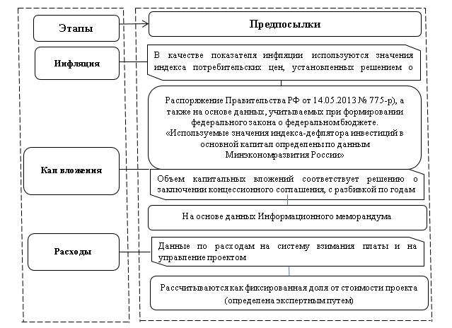 Рисунок 5 - Первичные этапы и предпосылки финансовой модели проекта с учетом нормативно-правовой базы