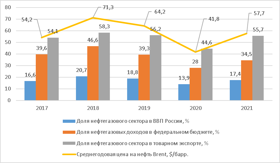Рис. 3. Нефтегазовый сектор в экономике Российской Федерации в 2017 – 2022 г.г.
