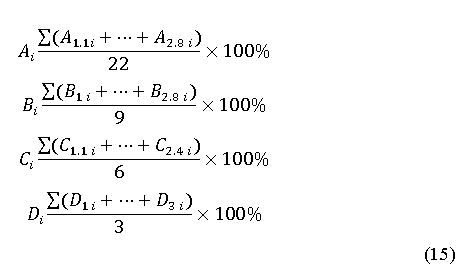 где A, B, C, D – компоненты индекса, приведенные в таблице 1. При этом, указанные компоненты могут выступать как в качестве параметра в составе Формулы 13, в таком случае их расчет имеет вид: