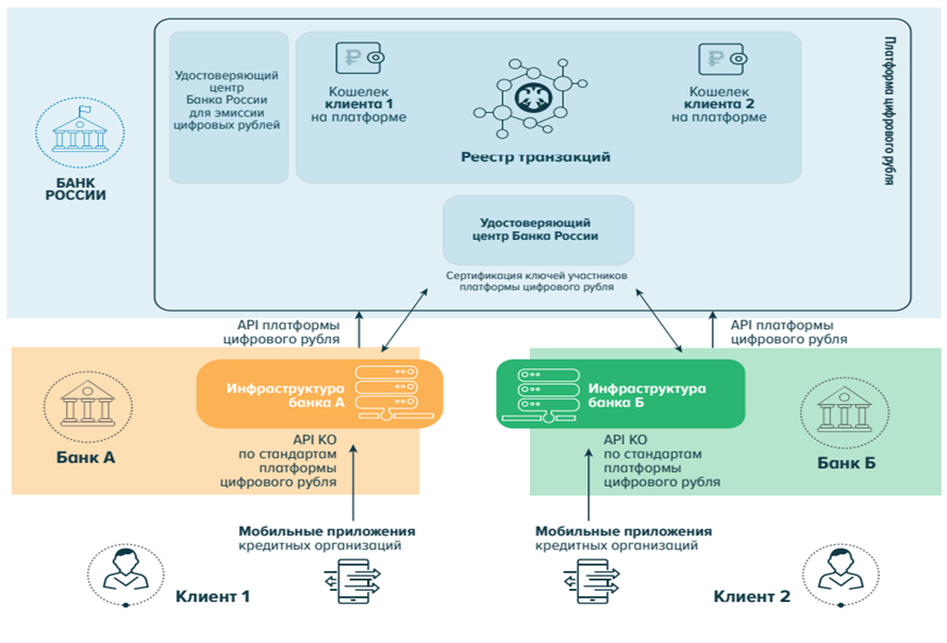 Технологический подходы к реализации цифрового рубля наглядно представлены в архитектуре его платформы на рисунке 2.