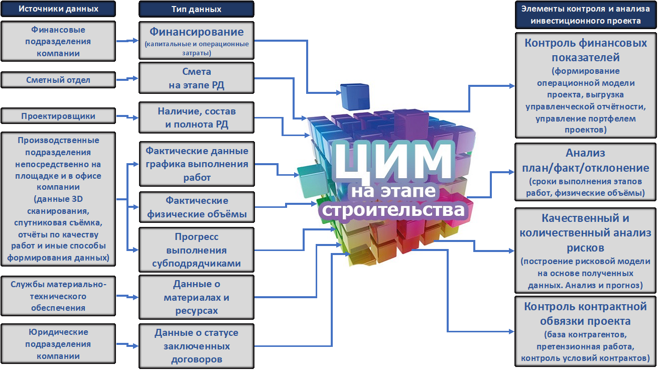 - интеграция финансовых данных с системой управления рисками. На рис. 1 представлена схема организации обрабатываемых и загружаемых данных в среду цифровой информационной модели.