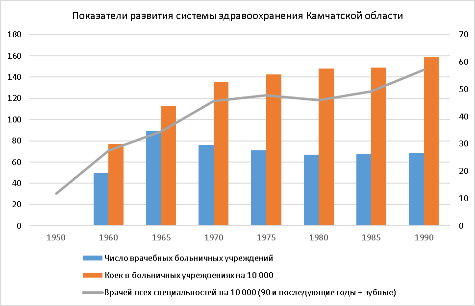 Рисунок 2. Развитие системы здравоохранения в Камчатской области в 50-90-е гг.