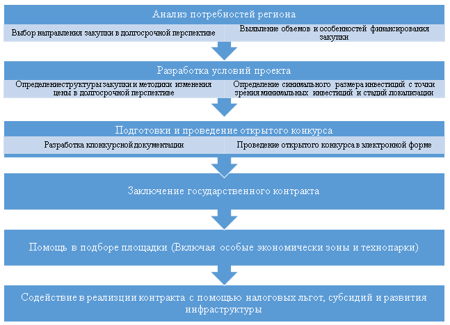 Механизм заключения офсетного контракта не предполагает выстраивания долгосрочных отношений в перспективе, так как срок его заключения ограничивается дестью годами. В его основе лежит возможность создания на региональном уровне новых перспективных и инновационных производств в соответствии с реальными потребностями общества, повышение налогооблагаемой базы для определённой территории [3]. Взамен инвестор получает гарантированный рынок сбыта производимой продукции.