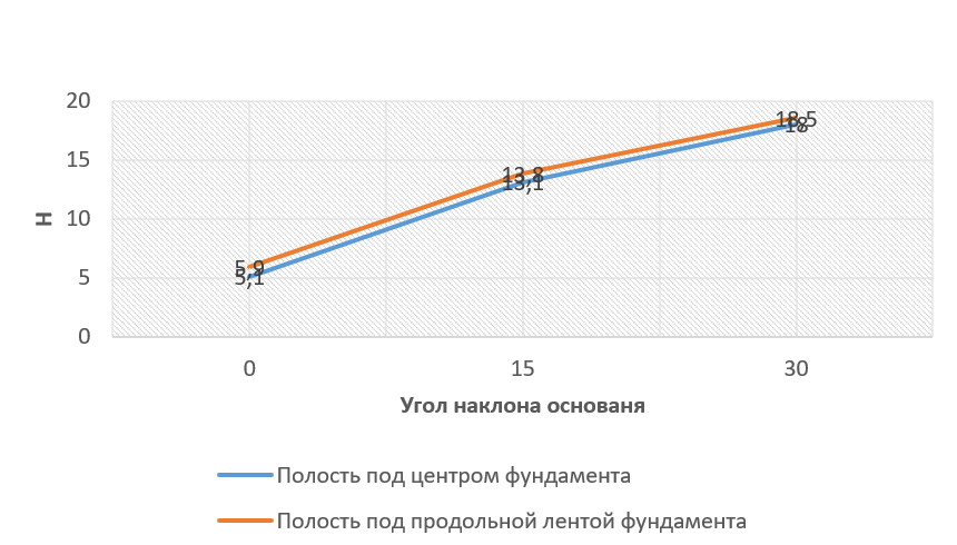 Основным варьируемым фактором при проведении экспериментов являлся угол наклона основания и оценка его влияния на характер изменения роста формы свода карстовой полости.